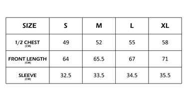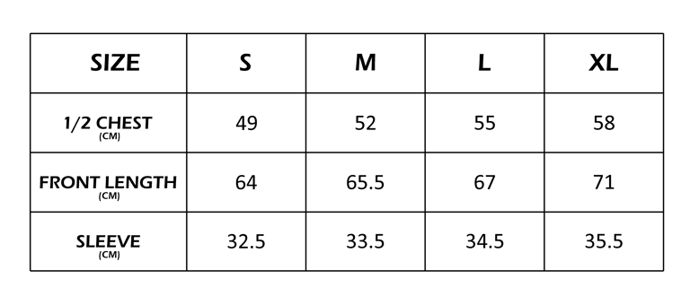 Please use the measurements below to compare against your own body measurements. All figures are listed in centimeters (cm).